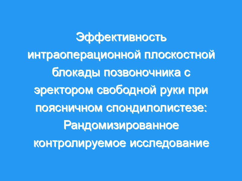 Лечение тяжелой послеоперационной боли в спине, возникшей после крупных операций на позвоночнике, остается сложной задачей. Продолжается поиск простой, эффективной и надежной периоперационной анальгезии с низким уровнем побочных эффектов. Мы стремились исследовать эффективность интраоперационной плоскостной блокады позвоночника с эректором свободной руки (ESBP) после операций на позвоночнике. Краткое изложение исходных данных: Несколько клинических случаев и рандомизированных контролируемых исследований продемонстрировали обезболивающую эффективность ESPB при операциях на позвоночнике. На сегодняшний день ни в одном рандомизированном контролируемом исследовании не изучалась эффективность ESPB при операциях на позвоночнике.
