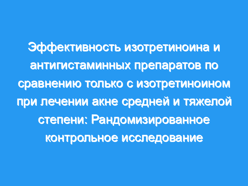 Цель: оценить эффективность и безопасность комбинации изотретиноина и антигистаминных препаратов по сравнению с применением только изотретиноина у пациентов с акне средней и тяжелой степени на 12-й неделе. Метод В это рандомизированное контролируемое сравнительное исследование были включены сто пациентов с акне средней и тяжелой степени.