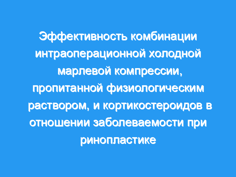 Специализированная больница высшего уровня в Турции. Субъекты и методы: триста пациентов, перенесших септоринопластику, были разделены на 2 группы. Во всех случаях в начале операции внутривенно вводили однократную дозу дексаметазона в дозе 10 мг. В основной группе во время операции спинку носа постоянно сдавливали марлей, пропитанной холодным физиологическим раствором. В контрольной группе спинку носа постоянно сжимали сухой марлей во время операции. Время операции и количество кровотечений регистрировались во время операции. Степень отека век и экхимоза периорбитальных мягких тканей регистрировали через 24 часа и на 2, 3, 5 и 7-й дни после операции 2 исследователями.