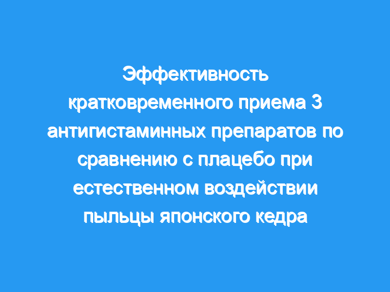 Рандомизированное плацебо-контролируемое исследование с двойной маскировкой было проведено у 113 человек с поллинозом японского кедра в течение 2 дней в марте 2003 года в Osaka Expo Park, Осака, Япония. Участники (в возрасте 20-57 лет) были разделены на 4 группы в соответствии с назначением лечения: цетиризина гидрохлорид, 10 мг/сут, фексофенадина гидрохлорид, 120 мг/сут, лоратадин, 10 мг/сут и плацебо (лактоза) два раза в день. Симптомы регистрировались ежечасно во время исследования. Кроме того, все пациенты заполнили японскую версию вопросника качества жизни при риноконъюнктивите до и после исследования.