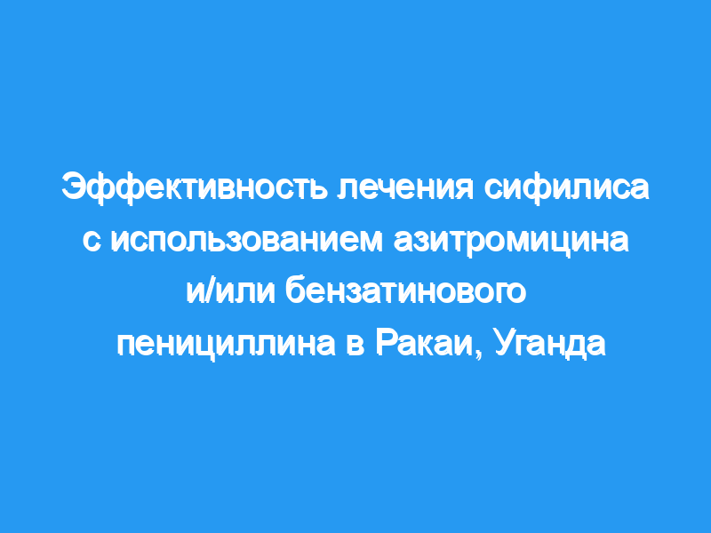 Среди 952 случаев сифилиса 18% получали только пенициллин, 17% — только азитромицин и 65% — двойное лечение. Общая скорость излечения составила 61%. Частота излечения была ниже у мужчин по сравнению с женщинами (ОР 0,89, 95% ДИ 0,80-0,99) и у пациентов с начальными титрами >, or =1:4 по сравнению с <, or =1:2 (ОР 0,77, 95% ДИ 0,69-0,86). Не было выявлено существенных различий в показателях излечения среди ВИЧ-инфицированных и ВИЧ-отрицательных лиц. При начальных титрах <, or =1:2, не было различий в скорости излечения в зависимости от режима лечения. Однако при начальных титрах >, or =1:4, наблюдались значительно более высокие показатели излечения при применении только азитромицина (скорректированный ОР 1,38, 95% ДИ 0,97-1,96) и при двойном лечении азитромицином и бензатинпенициллином (ОР 1,38, 95% ДИ 1,03-1,87). по сравнению с одним только пенициллином.