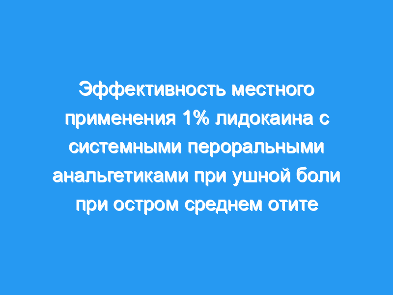 Острый средний отит (АОМ) — одна из наиболее распространенных детских инфекций. Боль в ухе, основной симптом АОМ, приводит к тому, что родители часто обращаются за медицинской помощью к своим детям. Целью этого исследования было сравнить эффективность местных 1%-ных ушных капель с лидокаином, вводимых вместе с пероральными анальгетиками, с эффективностью только пероральных анальгетиков.