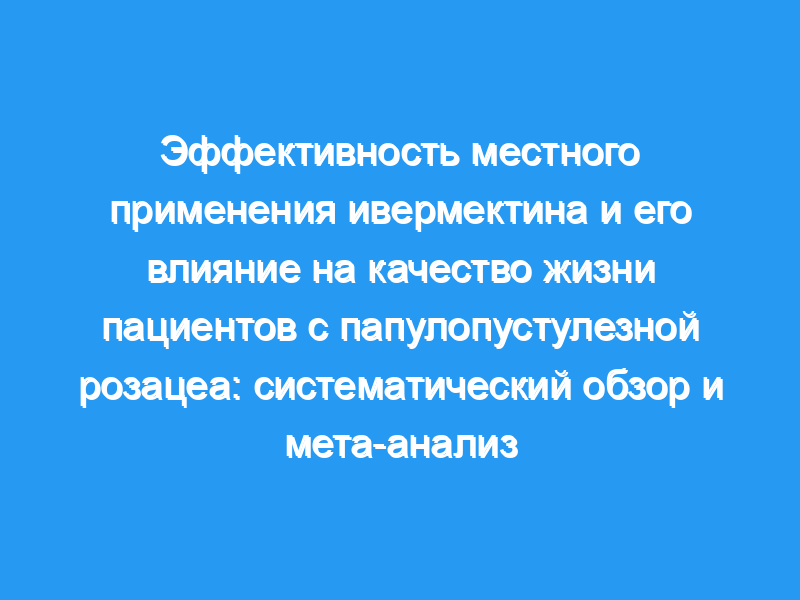 Мы провели поиск литературы в PubMed, MEDLINE, EMBASE, Cochrane и clinicaltrials.gov используя следующие дескрипторы: «розацеа» И «ивермектин». Эффективность оценивалась с помощью Глобальной оценки исследователя (IGA), а влияние на качество жизни основывалось на шкале DLQI scor.