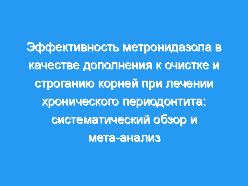 Метронидазол (MET) был предложен в качестве дополнения к очистке и строганию корней (SRP) при лечении хронического периодонтита. Однако его клиническая эффективность и воздействие на патогенные микроорганизмы пародонта еще предстоит определить. В настоящем мета-анализе оценивались научные данные, касающиеся эффекта MET в дополнение к SRP по сравнению с SRP отдельно.