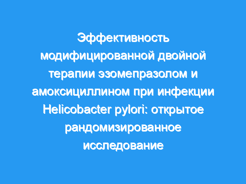 Распространенность резистентности Helicobacter pylori к амоксициллину в большинстве стран составляла менее 5%. Ингибитор протонной помпы (ИПП) — двойная терапия амоксициллином четыре раза в день (внутривенно) в течение 14 дней позволяет достичь скорости эрадикации более 85%. Неясно, может ли двойная терапия с более короткой продолжительностью лечения или более низкой частотой дозирования также обеспечить удовлетворительную скорость излечения. Мы провели рандомизированное контролируемое исследование для оценки эффективности и безопасности двух модифицированных методов двойной терапии эзомепразолом и амоксициллином, 10-дневной внутривенной и 14-дневной трехразовой ежедневной (т.е. внутривенной) двойной терапии, и изучения факторов, которые могут повлиять на показатели эрадикации. Участники и методы: в общей сложности 253 пациента были проверены на соответствие критериям, и 208 пациентов были случайным образом распределены на 10-дневную двойную терапию (эзомепразол 20 мг и амоксициллин 750 мг, все четыре раза в день) или 14-дневную двойную терапию (эзомепразол 20 мг и амоксициллин 1000 мг, все три раза в день).).