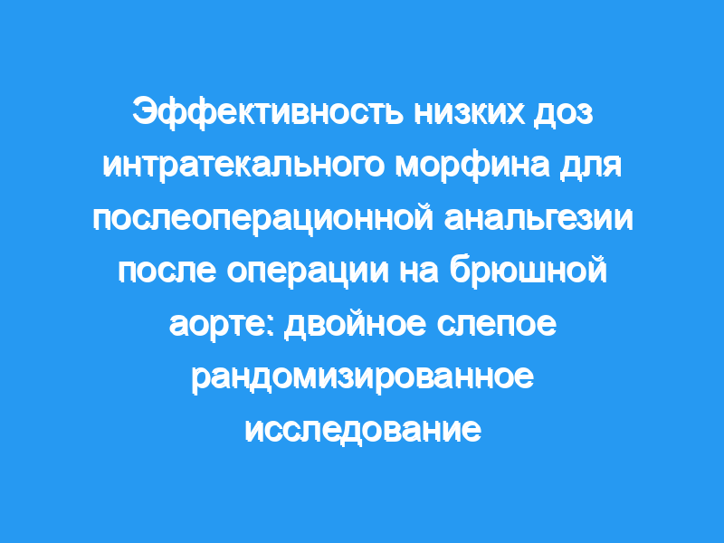 Предпосылки и цели: Несколько исследований показывают, что интратекальный морфин (ИТМ) улучшает обезболивание после операции на аорте. Мы проверили гипотезу о том, что в сочетании с мультимодальным послеоперационным обезболиванием низкие дозы ИТМ, связанные с общей анестезией, уменьшат потребность в послеоперационном обезболивании у пациентов, перенесших операцию на брюшной аорте.
