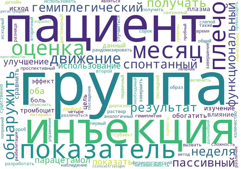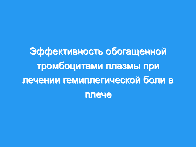 Было обнаружено, что инъекции PRP не превосходят плацебо. Улучшения в обеих группах можно объяснить использованием методов реабилитации и упражнений у всех пациентов. По-прежнему необходимы дальнейшие исследования, чтобы показать, является ли PRP вариантом лечения при гемиплегической боли в плече. Пробная регистрация: ClinicalTrials.gov Идентификатор: NCT03931824.