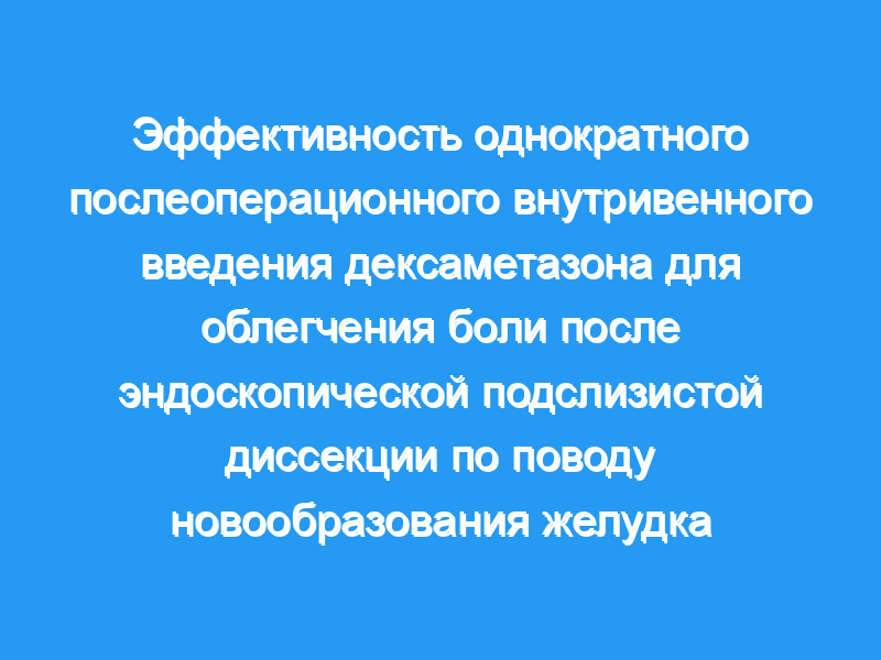 Однократное периоперационное внутривенное введение дексаметазона после ЭСД эффективно уменьшило боль в эпигастрии через 6 часов после операции.