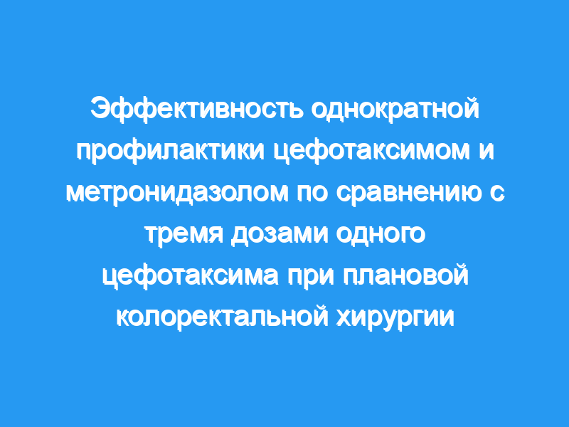 Сравнить три дозы одного цефотаксима с однократной дозой цефотаксима и метронидазола для профилактики инфекции после плановых колоректальных операций. Дизайн: Проспективное рандомизированное контрольное исследование.