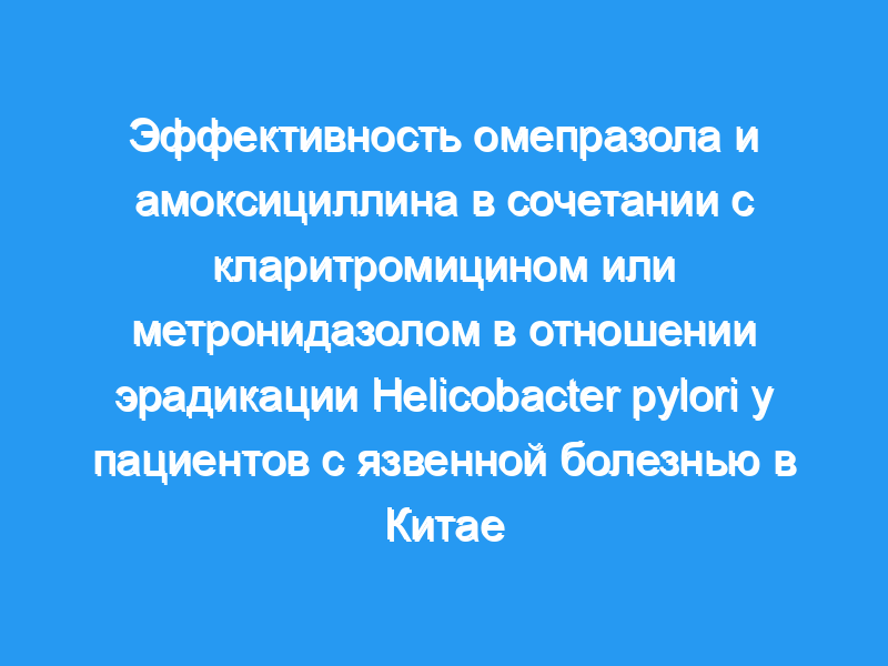 Однонедельная тройная терапия омепразолом и амоксициллином в комбинации с кларитромицином или метронидазолом эффективна для эрадикации H. pylori.. Терапевтический режим, включающий метронидазол, с низкой стоимостью, хорошей комплаентностью и умеренными побочными эффектами, может стать хорошим выбором для лечения пептических язв, связанных с инфекцией H. pylori в Китае.