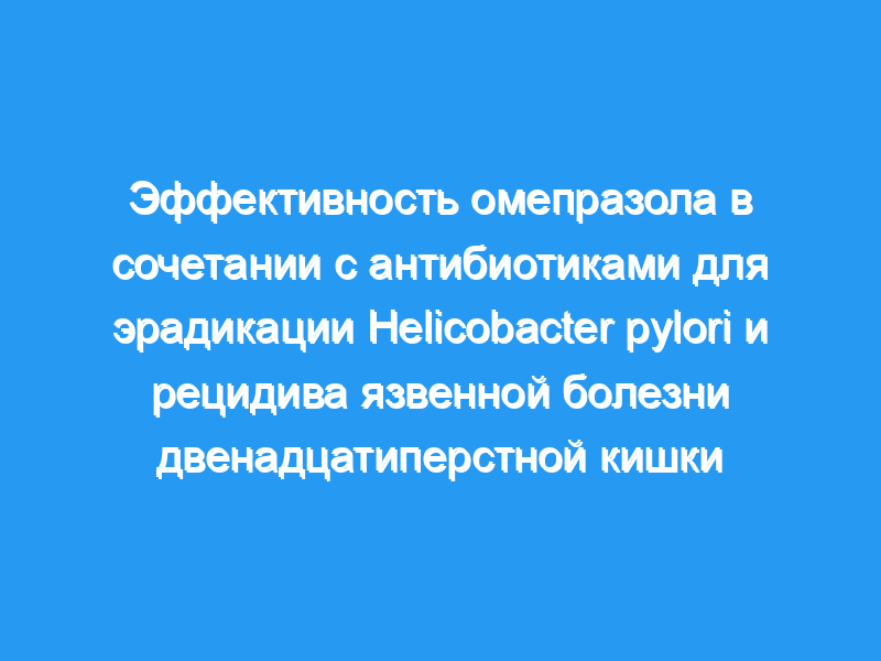 Установить эффективность омепразола в сочетании с двумя антибиотиками для эрадикации Helicobacter pylori и рецидива язвенной болезни двенадцатиперстной кишки. Пациенты: Тридцать семь пациентов с эндоскопически подтвержденной язвой двенадцатиперстной кишки и инфекцией H. pylori.