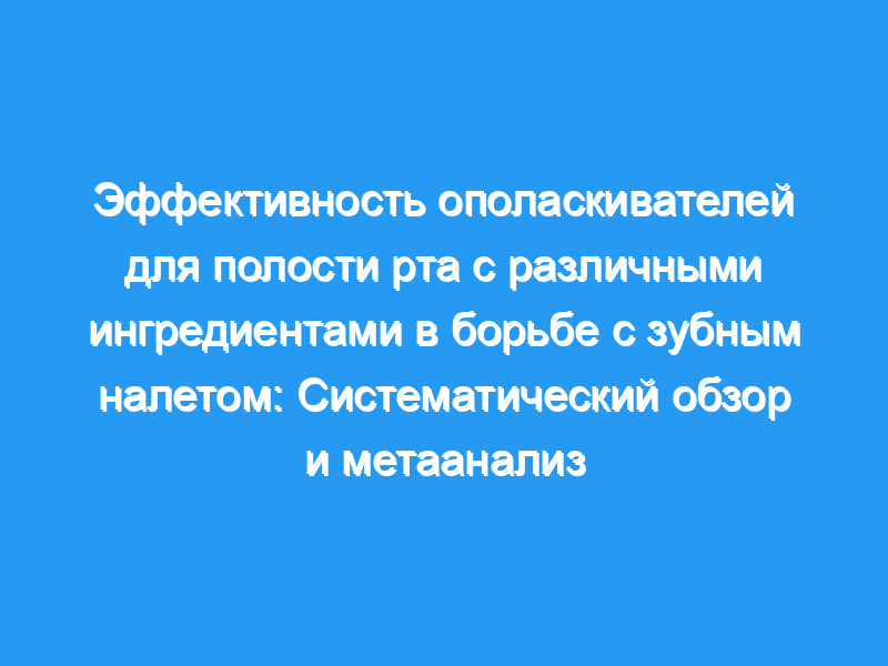 Целью нашего исследования было представить исчерпывающий обзор эффективности активных ингредиентов в жидкости для полоскания рта для борьбы с зубным налетом. Источник: Кокрейновская библиотека, Медицинская библиотека (MEDLINE-PubMed), базовая коллекция базы данных Web of Science, база данных Центра доказательной стоматологии Американской стоматологической ассоциации (ADA) и база данных Scopus были использованы для нашего обзора и мета-анализа. Методология: Это был систематический обзор, который включал статьи с метаанализом и без него об эффективности ополаскивателей для рта с различными активными ингредиентами в борьбе с зубным налетом. Эксперименты In vitro и на животных были исключены из исследования. Методологическая оценка качества была проведена с помощью AMSTAR. Предполагаемый вероятный риск несправедливости был рассчитан в соответствии с качеством регистрации, отчетности и методологии выбранных систематических обзоров в соответствии с рекомендациями PRISMA для систематических обзоров.
