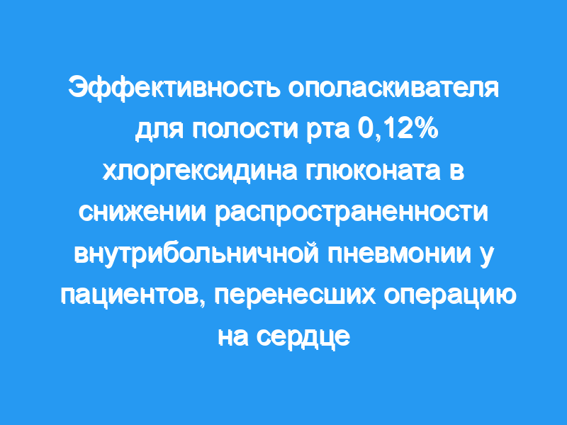 Проверить эффективность 0,12% раствора для полоскания полости рта хлоргексидина глюконата в снижении микробной колонизации дыхательных путей и внутрибольничной пневмонии у пациентов, перенесших операцию на открытом сердце.