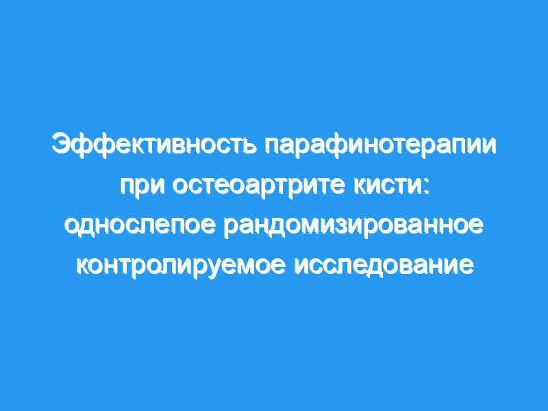 Оценить эффективность терапии парафиновыми ваннами в отношении боли, функции и мышечной силы у пациентов с остеоартритом кисти. Дизайн: Проспективное однослепое рандомизированное контролируемое исследование.