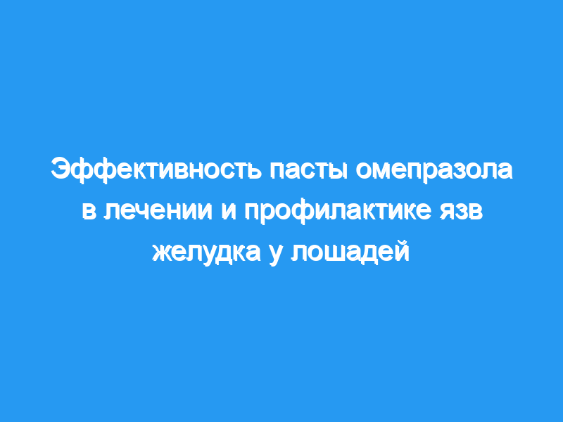 Омепразол, ингибитор кислотной помпы, в 5 раз более мощный, чем ранитидин, был используется с большим успехом для лечения EGUS. Это многоцентровое исследование чистокровных скаковых лошадей с эндоскопически верифицированными язвами желудка было разработано для демонстрации эффективности омепразола в составе пероральной пасты для лошадей в лечении и профилактике рецидивов EGUS. Из 100 лошадей, включенных в исследование, 25 подвергались ложной дозировке в течение полных 58 дней племенного разведения.