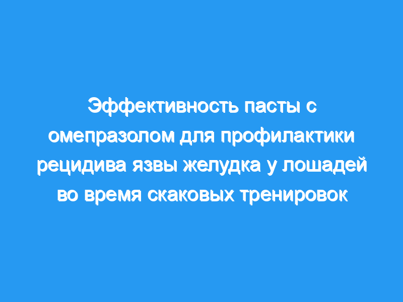 Лошади, получавшие фиктивную дозу, и лошади, получавшие 0,5 мг омепразола/кг, имели значительно более высокие показатели язвы, чем лошади, получавшие 1 мг омепразола/кг. Наблюдалась значительная разница между долей лошадей, получавших 1 мг омепразола/кг (38/48 [179%]), у которых не было язв, и долей лошадей, получавших фиктивную дозу (7/44 [16%]), у которых не было язв. Выводы и клиническая значимость: Пероральная паста с омепразолом, вводимая в дозе 1 мг/кг, PO, каждые 24 часа в течение 28 дней, была эффективной для профилактики рецидивов язв желудка у лошадей во время скаковых тренировок.