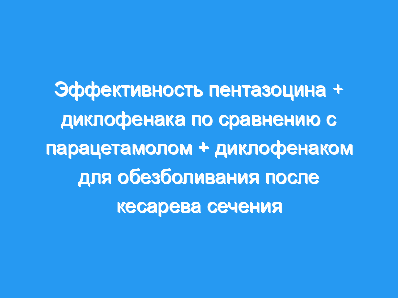 Цель этого исследования — сравнить эффективность пентазоцина + диклофенака и парацетамола + диклофенака при послеоперационном обезболивании после КС. Методология: Это было одно слепое рандомизированное исследование. Беременные женщины, перенесшие КС, были рандомизированы на две группы. Группа А после операции получала внутримышечно пентазоцин + ректальный диклофенак. Группа В после операции получала внутримышечный парацетамол + ректальный диклофенак. Послеоперационную боль оценивали по числовой шкале через 1 ч после операции, через 6 ч, 12 ч и 24 ч. Полученный результат был проанализирован с использованием SPSS версии 22, и P <, 0,05 считался статистически значимым.