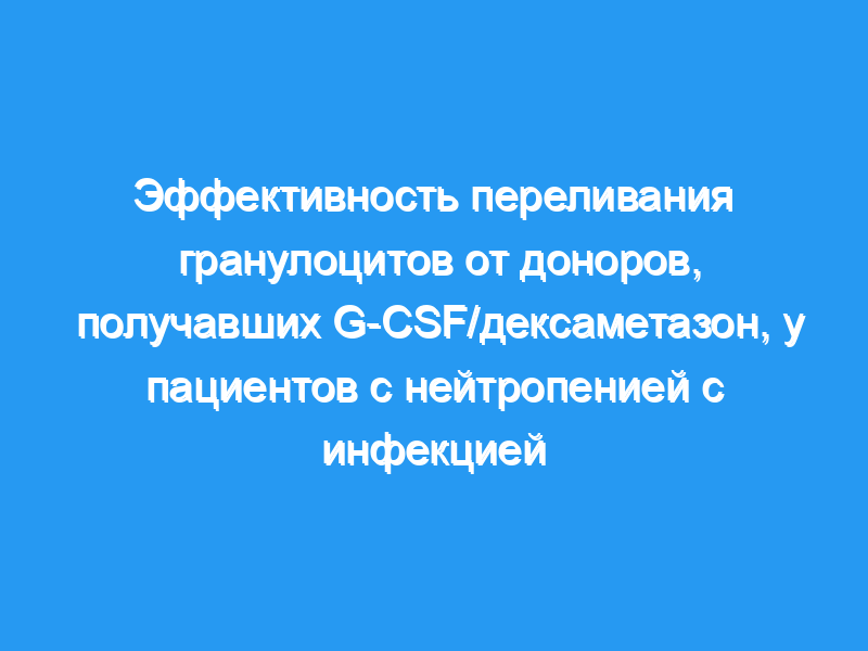Высокодозная терапия переливанием гранулоцитов доступна уже 20 лет, однако ее клиническая эффективность никогда не была окончательно продемонстрирована.