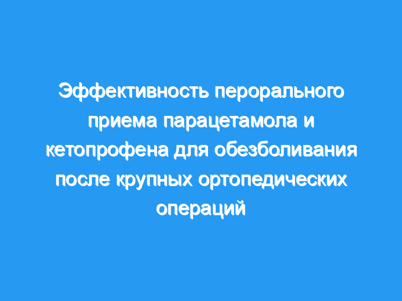 Гипотеза этого исследования заключалась в том, что пероральный парацетамол или кетопрофен могут снизить потребление опиоидов и побочные эффекты опиоидов после серьезных ортопедических операций.Шестьдесят пациентов, перенесших плановую операцию по тотальному эндопротезированию тазобедренного сустава, приняли участие в этом двойном слепом рандомизированном плацебо-контролируемом исследовании.