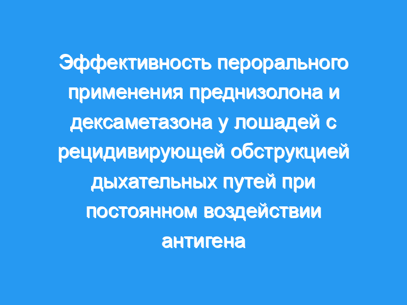 Причины проведения исследования: Перорально вводимые преднизолон и дексаметазон обычно используются при лечении рецидивирующей обструкции дыхательных путей (RAO) у лошадей. Однако эффективность преднизолона в улучшении функции легких во время непрерывного воздействия антигена не оценивалась критически, и существует мало доказательств, подтверждающих эффективность низких доз перорального дексаметазона в тех же условиях. Гипотеза: Пероральные преднизолон и дексаметазон улучшают функцию легких при РАО в условиях непрерывного воздействия антигена, и дексаметазон более эффективен, чем преднизолон в обычно используемых дозировках.