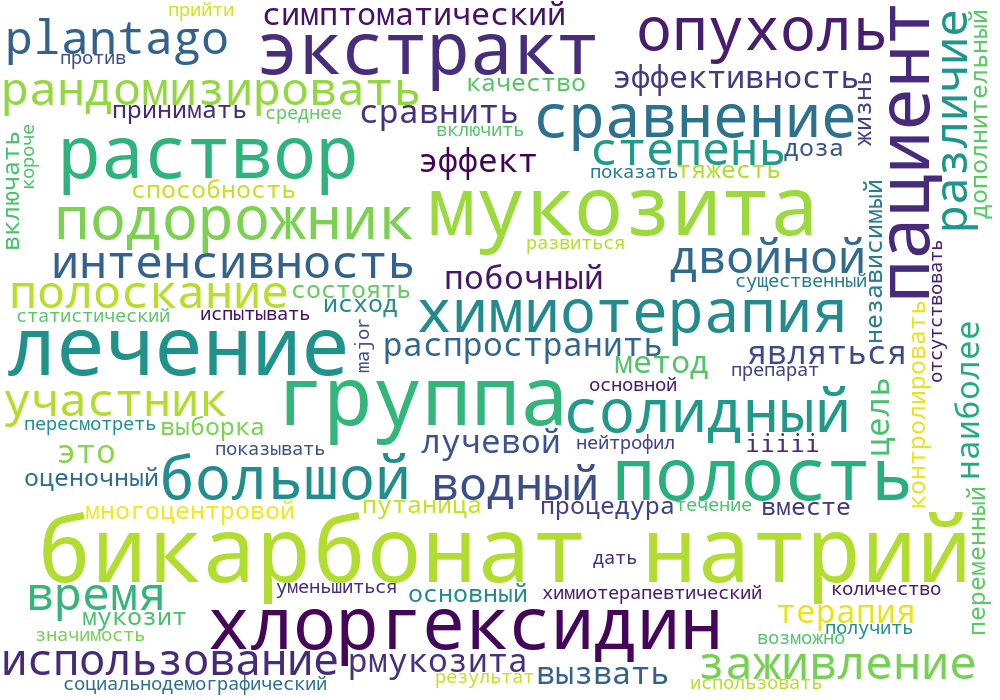 Мукозит полости рта является одним из наиболее распространенных побочных эффектов химиотерапии и лучевой терапии. Целью этого исследования было сравнить эффективность экстракта подорожника большого по сравнению с хлоргексидином 0,12% и бикарбонатом натрия 5% в симптоматическом лечении вызванного химиотерапией мукозита полости рта у пациентов с солидными опухолями. Метод: Многоцентровое рандомизированное контролируемое исследование, оценочная выборка из 45 пациентов с солидными опухолями с мукозитом II-III степени. Участники были рандомизированы на одну из трех процедур, состоящих из 5%-ного водного раствора бикарбоната натрия вместе с: дополнительной дозой 5%-ного водного раствора бикарбоната натрия, экстракта подорожника большого или хлоргексидина 0,12%. Основными исходами были тяжесть мукозита, интенсивность боли, способность принимать пищу через рот и качество жизни. Независимой переменной была группа лечения, а путаницы включали социально-демографические данные, количество нейтрофилов, химиотерапевтический препарат и полученную дозу.