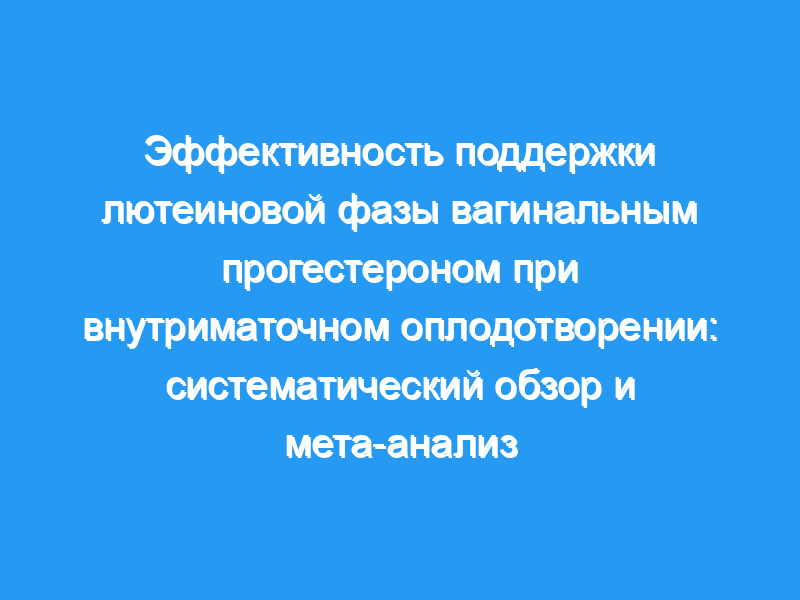 Систематический обзор и мета-анализ. Были включены рандомизированные контролируемые исследования (РКИ), в которых сравнивались добавки лютеиновой фазы с вагинальным прогестероном среди женщин, перенесших ВМС, по сравнению с контрольной группой. Основным оцениваемым результатом был показатель живой рождаемости.