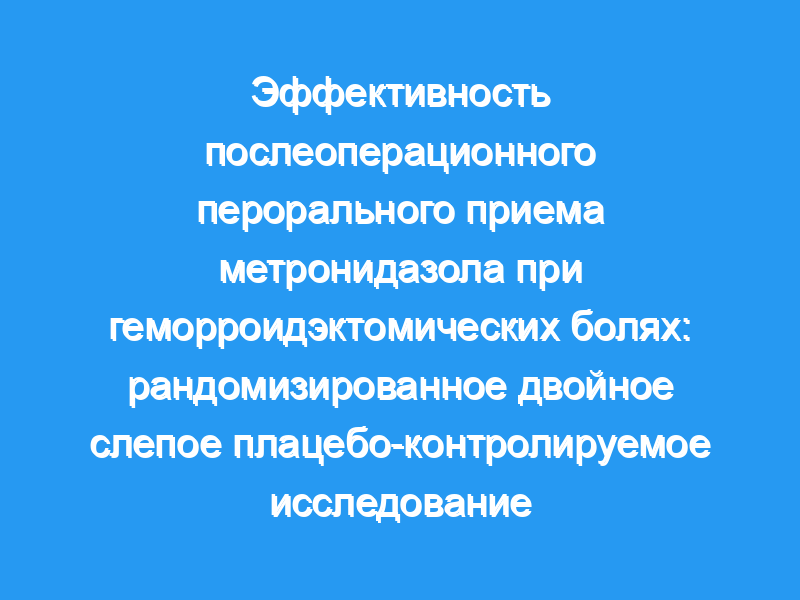 Целью этой работы было изучение эффективности перорального метронидазола в уменьшении боли после геморроидэктомии по сравнению с плацебо. Метод: Сорок пациентов были рандомизированы либо на метронидазол и стандартное лечение, либо на плацебо и стандартное лечение (21 метронидазол, 19 плацебо) в двойном слепом рандомизированном контролируемом исследовании. Основным показателем результата была оценка боли после геморроидэктомии в течение 21 дня, измеренная по 10-балльной шкале Лайкерта.