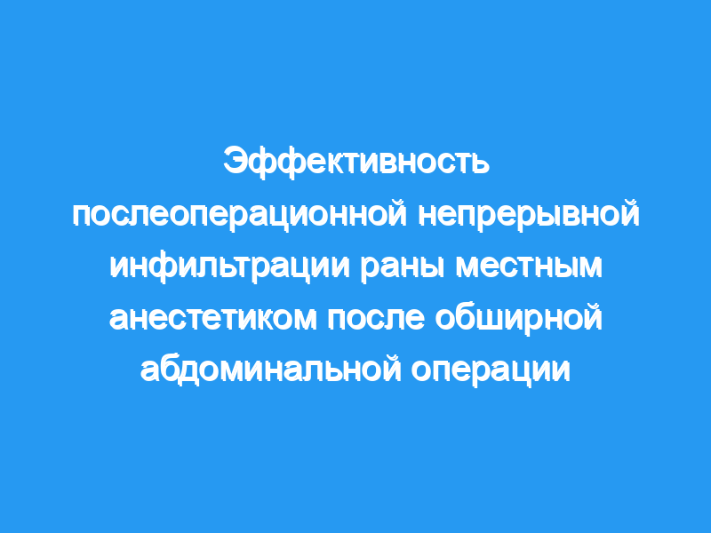 Целью данного исследования была оценка обезболивающей эффективности, безопасности, опиоидосберегающих эффектов и улучшения дыхательной функции при использовании 0,2% ропивакаина для непрерывной инфильтрации раны после обширной внутрибрюшной операции.