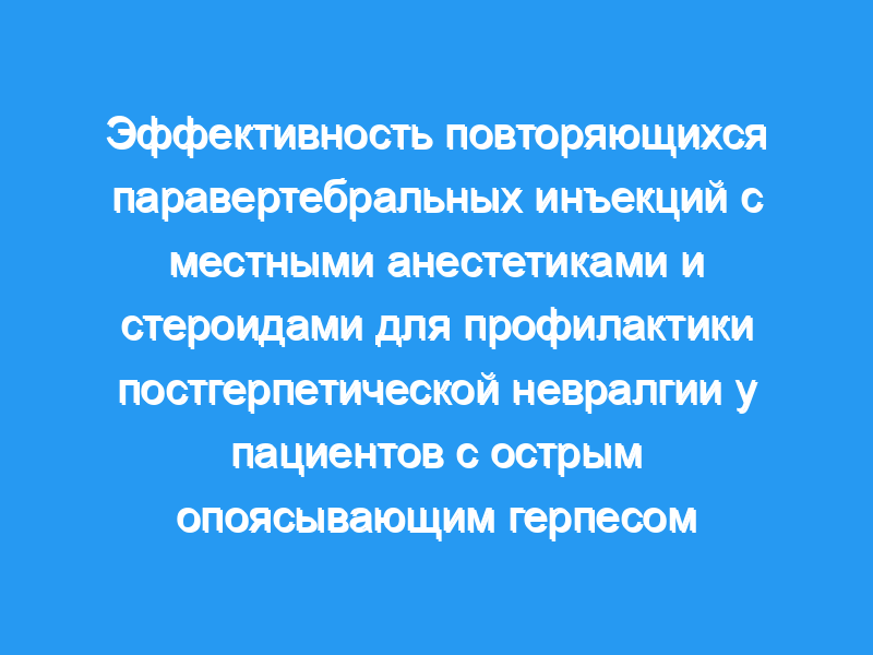 Повторяющаяся паравертебральная анестезирующая блокада в сочетании со стероидами плюс стандартное лечение ацикловиром и анальгетиками значительно снизили частоту возникновения ФН, чем только стандартное лечение.