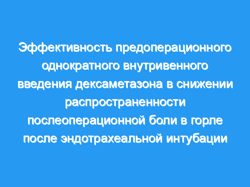 Внутривенное введение дексаметазона не имело значительной эффективности против послеоперационной боли в горле после эндотрахеальной интубации.
