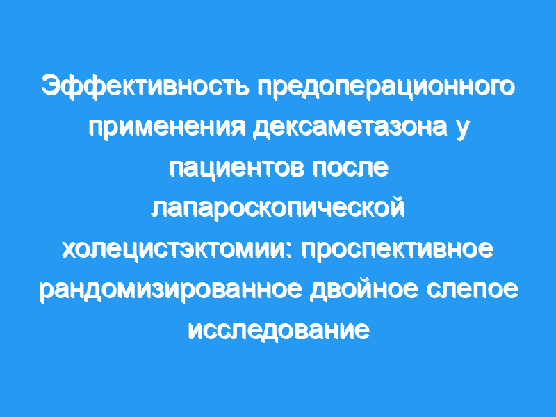 Справочная информация/цель: Сообщалось, что дексаметазон уменьшает послеоперационную тошноту и рвоту (PONV) после лапароскопической холецистэктомии (LC). Однако его влияние на другие хирургические исходы, такие как боль и усталость, было неясным. Целью этого клинического исследования была оценка эффективности предоперационного дексаметазона в улучшении послеоперационных симптомов после ЛК.