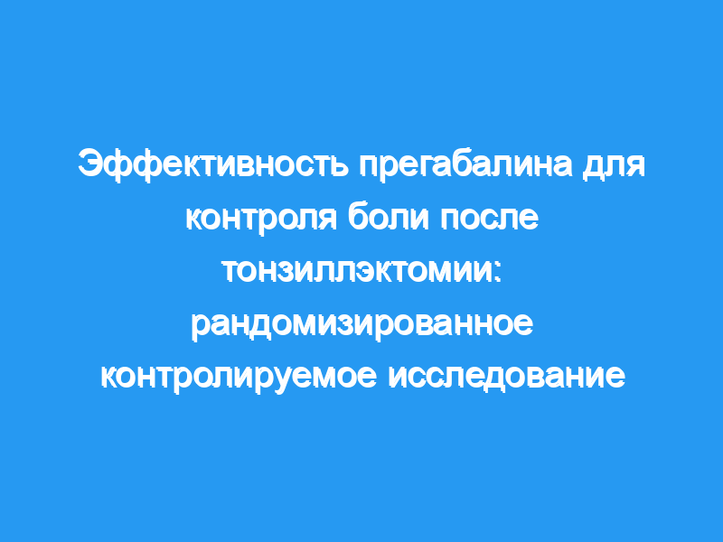 Введение 300 мг прегабалина перед тонзиллэктомией снижает потребление фентанила по сравнению с таковым после 4 мг диазепама, без увеличения частоты побочных эффектов. Пробная регистрация: KCT0001215.