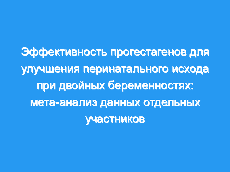 Оценить эффективность лечения прогестагенами в профилактике неонатальной заболеваемости или ПТБ при двойных беременностях с использованием мета-анализа данных отдельных участников (IPDMA). Стратегия поиска: Мы провели поиск по международным научным базам данных, веб-сайтам регистрации проб и ссылкам на идентифицированные статьи. Критерии отбора: Рандомизированные клинические испытания (РКИ) 17-гидроксипрогестерона капроата (17Pc) или вагинально вводимого натурального прогестерона по сравнению с плацебо или отсутствием лечения. Сбор и анализ данных: Исследователям выявленных РКИ было предложено поделиться своими IPD. Первичным исходом была совокупность перинатальной смертности и тяжелой неонатальной заболеваемости. Были проведены предварительные анализы подгрупп на наличие хориона, длину шейки матки и предшествующую спонтанную ПТБ.