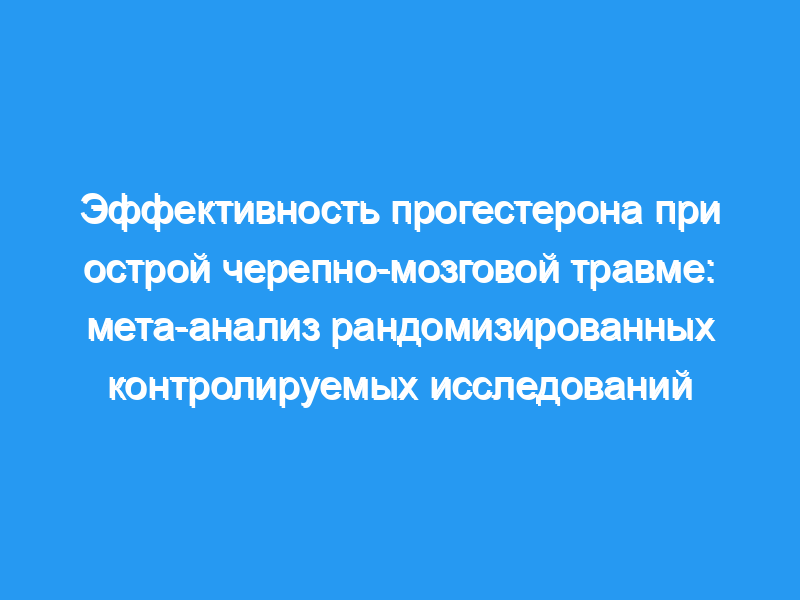 Настоящее исследование посвящено эффективности прогестерона при острой ЧМТ на основе опубликованных данных рандомизированных контролируемых исследований (РКИ). MEDLINE, EMBASE и библиотека Кокрейна использовались для поиска с января 1980 по август 2015 года для изучения английского языка.