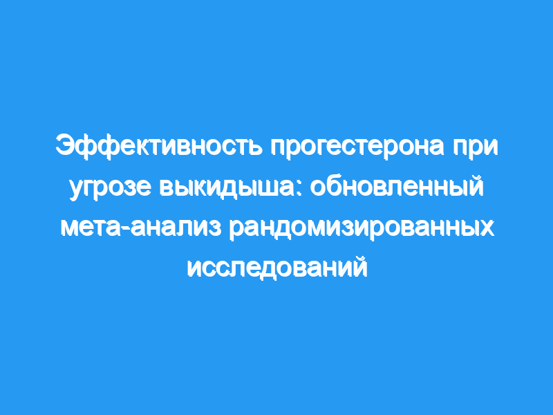 Эффективность добавок прогестерона при лечении угрозы выкидыша является спорной. Этот метаанализ был направлен на оценку корреляции между прогестероном и улучшением исходов беременности у женщин с угрозой выкидыша.