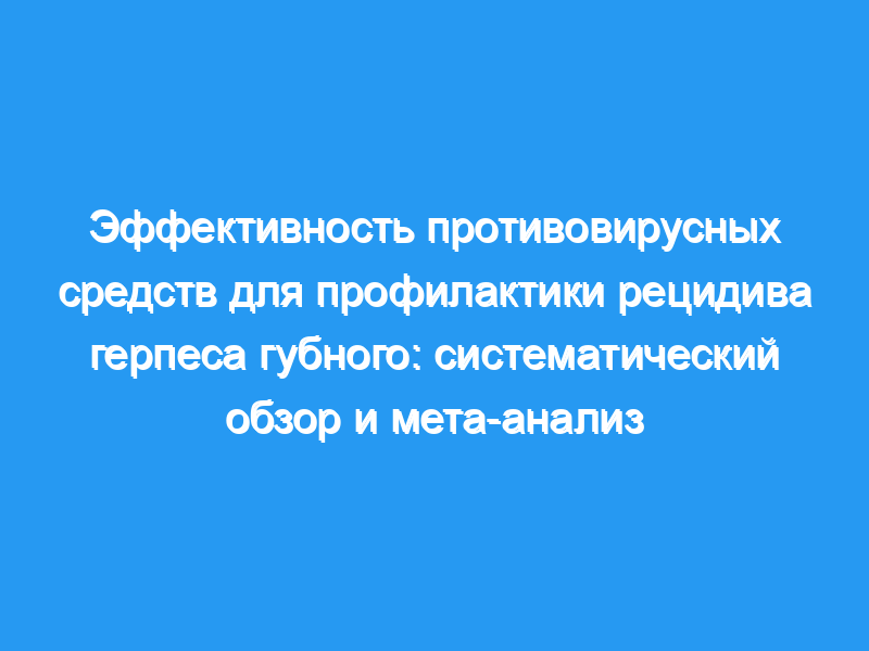 Целью этого исследования было завершить систематический обзор и, по возможности, метаанализ эффективности системных и местных нуклеозидных противовирусных средств в профилактике рецидива герпеса губного (RHL) у иммунокомпетентных субъектов. Дизайн исследования: Многочисленные комплексные электронные и ручные поиски литературы без языковых ограничений позволили определить исследования, которые будут включены. Методы оценки качества и синтеза данных соответствовали методам, описанным в кокрейновских руководящих принципах.