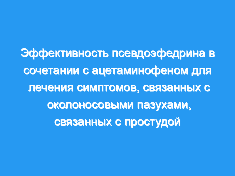 Наши результаты показывают, что псевдоэфедрин плюс ацетаминофен эффективны для облегчения симптомов, связанных с околоносовыми пазухами, которые могут развиться на ранних стадиях простуды. Arch Fam Med. 2000,9:979-985