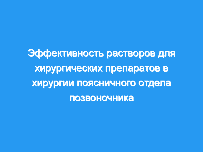 Хлорапреп и ДюраПреп являются одинаково эффективными растворами для подготовки кожи для уничтожения распространенных бактериальных патогенов на коже, покрывающей поясничный отдел позвоночника.