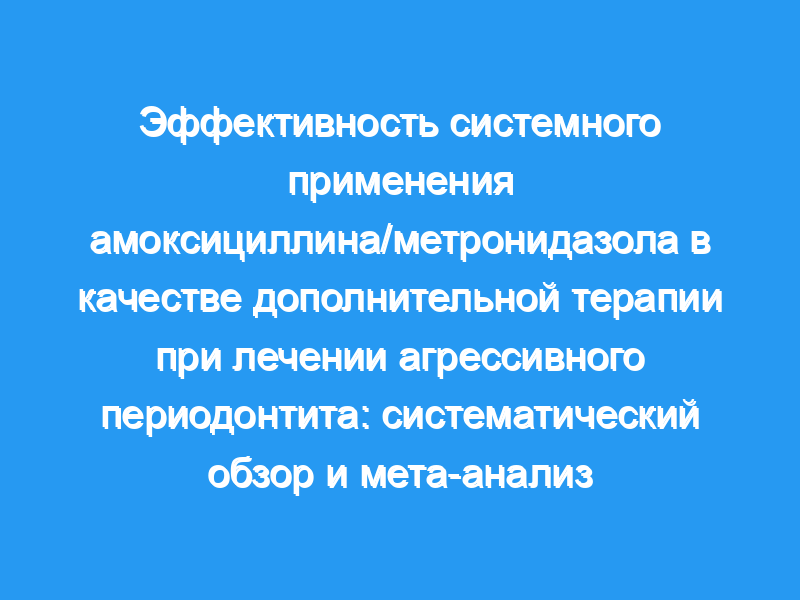 Для лечения генерализованного агрессивного периодонтита было предложено системное применение комбинированного амоксициллина и метронидазола (AMX/MET) в качестве дополнительного средства для удаления зубного налета и выравнивания корней (FMSRP), однако его эффективность и клиническая безопасность еще предстоит определить. Целью настоящего мета-анализа является оценка эффективности FMSRP + AMX/MET по сравнению только с FMSRP.