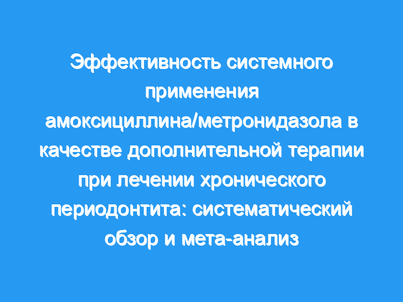 Для лечения хронического периодонтита была предложена комбинация амоксициллина и метронидазола (AMX/MET) в качестве дополнительного лечения к строганию корней (SRP), однако ее эффективность и клиническая безопасность еще предстоит определить. Целью настоящего мета-анализа является оценка эффективности SRP + AMX/MET по сравнению только с SRP.