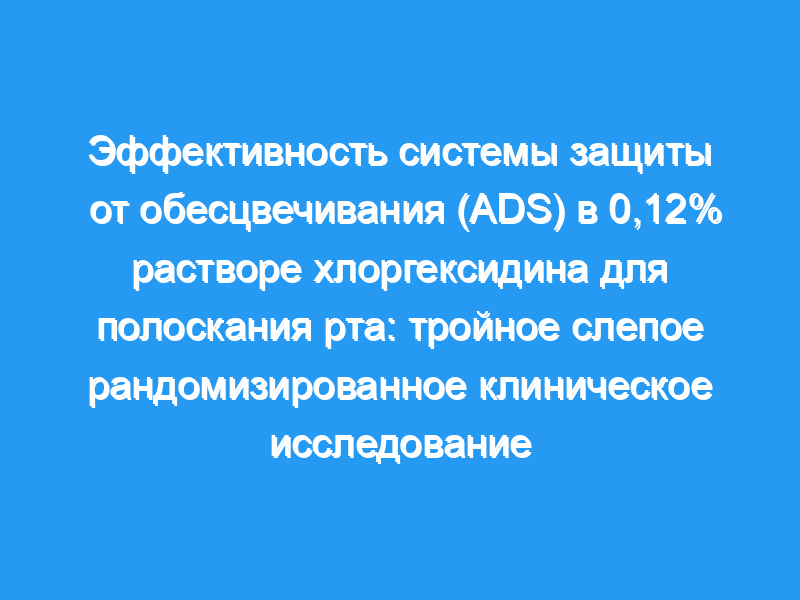 Было проведено тройное слепое перекрестное рандомизированное клиническое исследование с участием 22 здоровых добровольцев, которым было предложено полоскать рот два раза в день в течение 21 дня с использованием 0,12%-ных ополаскивателей для рта CHX, содержащих или не содержащих ADS (промывание = 21 день). Изменение цвета зубов сравнивали с помощью спектроскопии (ΔE) и прямого визуального осмотра, выполненного самим стоматологом и добровольцами. Через 6 месяцев теми же добровольцами и специально набранными врачами-стоматологами был проведен дальнейший визуальный анализ клинических изображений.