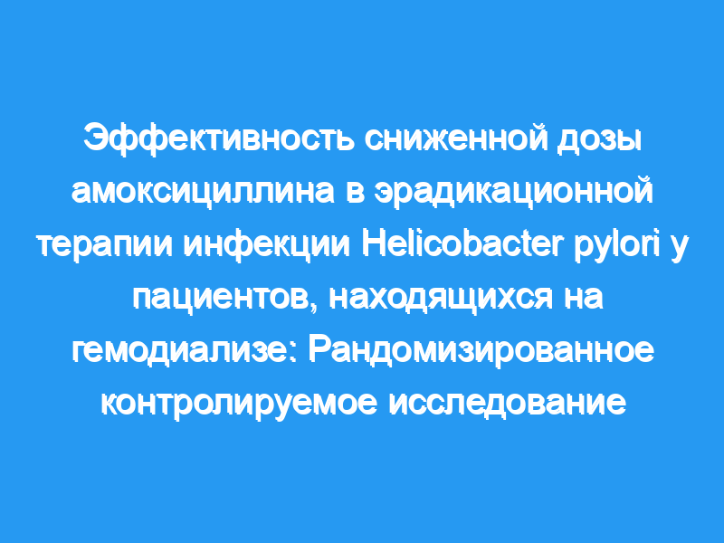 Оптимальный режим эрадикации Helicobacter pylori для пациентов, находящихся на гемодиализе, еще предстоит разработать из-за различий в фармакокинетике амоксициллина у пациентов, находящихся на гемодиализе, и здоровых людей. Мы провели исследование, чтобы установить соответствующие дозы амоксициллина для эрадикации инфекции H. pylori у пациентов, находящихся на гемодиализе.