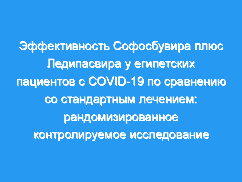 Участники были рандомизированы поровну в группу вмешательства, которая получала Софосбувир/ледипасвир (группа S.L.), и контрольную группу, получавшую Осельтамивир, гидроксихлорохин и азитромицин (группа OCH). Первичными исходами были частота излечения с течением времени и частота серьезных побочных эффектов.