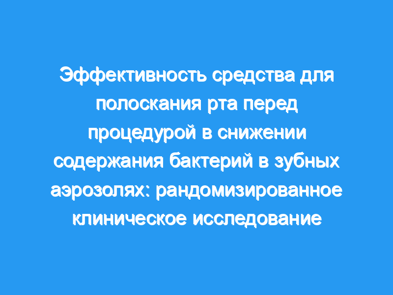 Целью этого рандомизированного, однократного слепого клинического исследования было оценить влияние жидкости для полоскания рта, содержащей хлорид цетилпиридиния (CPC), лактат цинка (Zn) и фторид натрия (F), на уменьшение жизнеспособных бактерий в аэрозоле полости рта после стоматологической профилактики с помощью ультразвуковой шкалы.Шестьдесят системно здоровых добровольцев, получавших стоматологическую профилактику, были случайным образом распределены в одну из следующих экспериментальных групп (по 15 на группу): (i) полоскание 0,075% CPC, 0,28% Zn и 0,05% F (CPC+Zn+F), (ii) вода или (iii) 0,12% диглюконата хлоргексидина (CHX) и (iv) отсутствие ринзина.