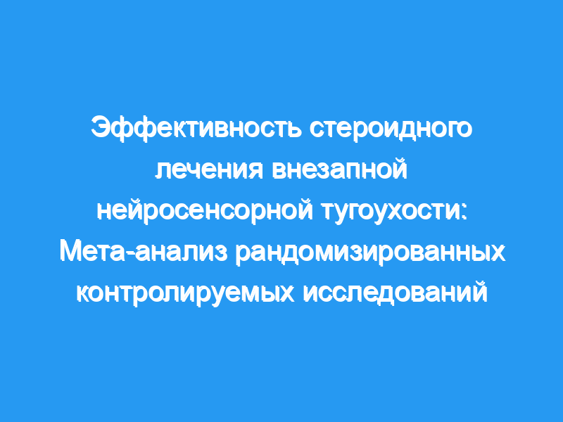 С 1950 по октябрь 2019 года был проведен систематический поиск литературы по рандомизированным контролируемым исследованиям, в которых сравнивалось применение внутричерепной, системной и комбинированной стероидной терапии при SSHL. Результаты улучшения скорости восстановления и чистого среднего тонуса (PTA) оценивались с помощью мета-анализа случайных эффектов и фиксированных эффектов.