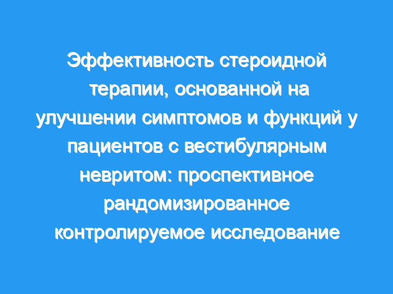 Целью этого исследования было изучить эффективность метилпреднизолона при вестибулярном неврите (ВН) по объективным и субъективным показателям.