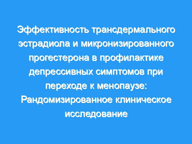 Изучить эффективность трансдермального применения эстрадиола в сочетании с интермиттирующим микронизированным прогестероном (TE+IMP) в предотвращении появления депрессивных симптомов у женщин в перименопаузе и ранней постменопаузе с начальной эутимией. Вторичная цель состояла в том, чтобы определить исходные характеристики, предсказывающие благотворное влияние TE +IMP на настроение. Дизайн, условия и участники: Двойное слепое плацебо-контролируемое рандомизированное исследование в Университете Северной Каролины в Чапел-Хилл с октября 2010 по февраль 2016 года. Среди участников были женщины в перименопаузе и ранней постменопаузе в возрасте от 45 до 60 лет. Вмешательства: Трансдермальный эстрадиол (0,1 мг/сут) или трансдермальное плацебо в течение 12 месяцев. Пероральный микронизированный прогестерон (200 мг/сут в течение 12 дней) также вводили каждые 3 месяца женщинам, получавшим активный ТЕ, и идентичные таблетки плацебо давали женщинам, получавшим плацебо. Основные показатели результатов: Баллы по шкале депрессии Центра эпидемиологических исследований (CES-D), оцениваемые на исходном уровне и в течение нескольких месяцев. 1, 2, 4, 6, 8, 10, и 12 после рандомизации, а также частота клинически значимых депрессивных симптомов, определяемая как оценка CES-D, равная не менее минимум 16.