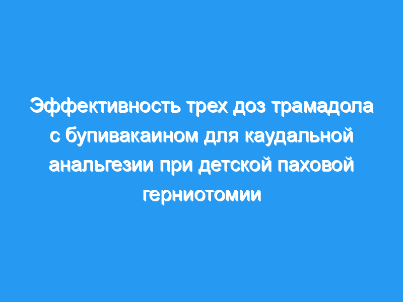 Каудальный трамадол 2 мг кг(-1) в сочетании с бупивакаином 0,25% 0,75 мл кг(-1) обеспечивал более длительную послеоперационную анальгезию и снижал потребность в спасательном анальгетике по сравнению с трамадолом 1 мг кг(-1) или 1,5 мг кг(-1) у детей, перенесших паховую анестезию. герниотомия.
