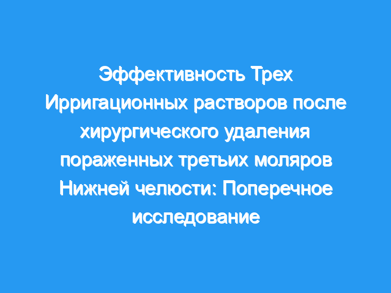 Настоящее исследование было проведено для оценки влияния орошения тремя различными ирригантами, а именно физиологическим раствором, хлоргексидином и повидон-йодом, на боль, альвеолярный остеит, отек, тризм, инфекцию и попадание пищи во время хирургического удаления пораженного третьего моляра нижней челюсти.
