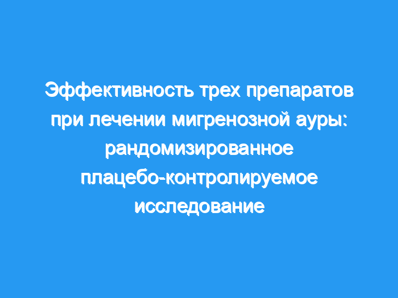 Поэтому цель этого исследования — оценить эволюцию ауры у пациентов принимались плацебо и три различных препарата, доступных в бразильском отделении общественного здравоохранения.